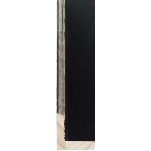 Deze zwarte baklijst is afgewerkt met een schuine top die voorzien is van een zilverlaagje. De hoge zijde zit aan de zijkant van de lijst en de lage zijde komt aan de doekkant.