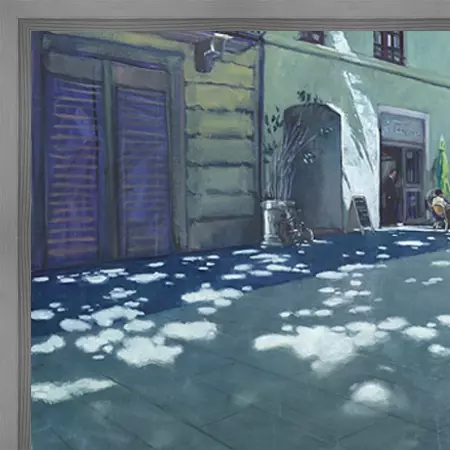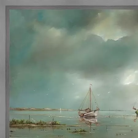 We maken het kunstwerk alvast inlijstklaar en zetten het op de ezel. We tonen de hoekmonsters van de lijsten dan in combinatie met het kunstwerk per videobelafspraak zodat je het real live kunt beoordelen. We kunnen dan ook overleggen als er nog andere wensen zijn.