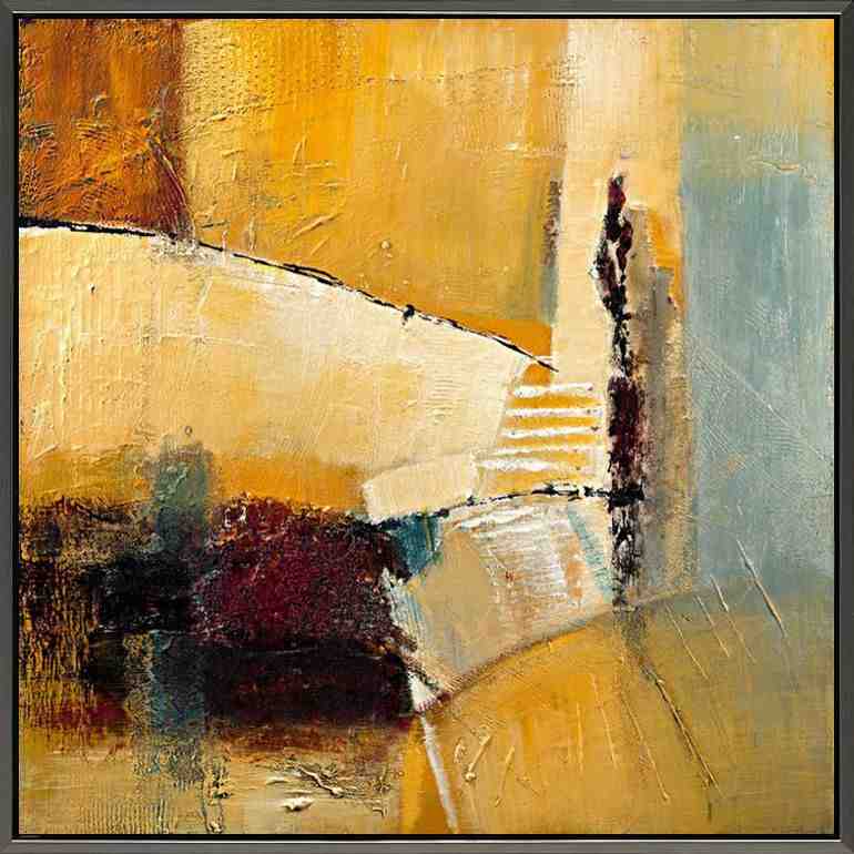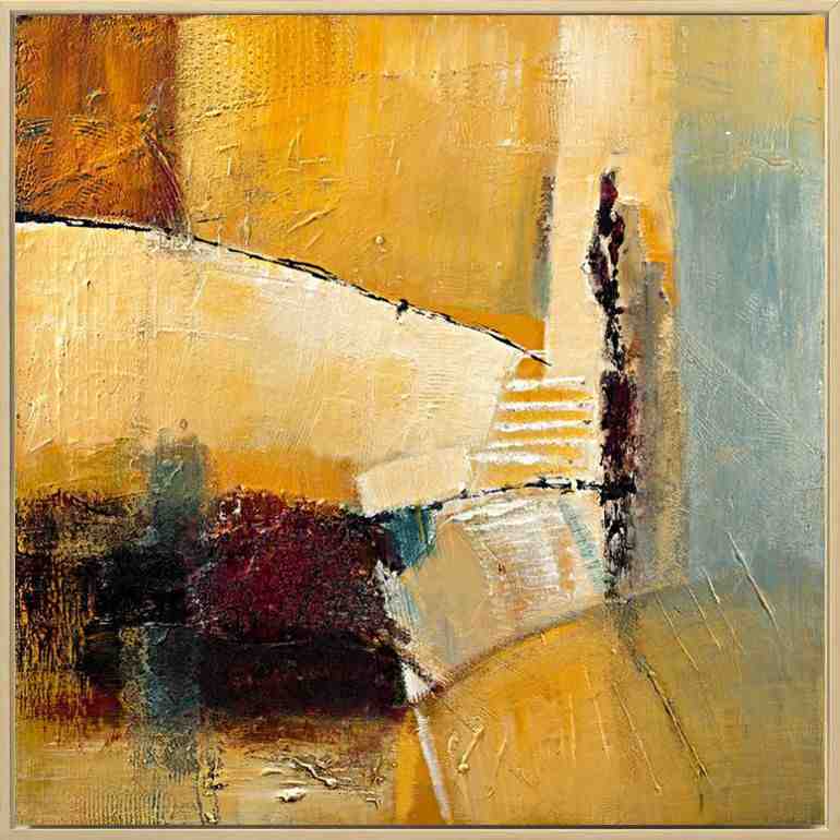 Get in touch is een modern abstract kunstwerk in een vierkante vorm. Het is in lagen opgebouwd uit kleurvlakken, lijnen en accentueringen en verschillende structuren.