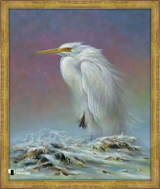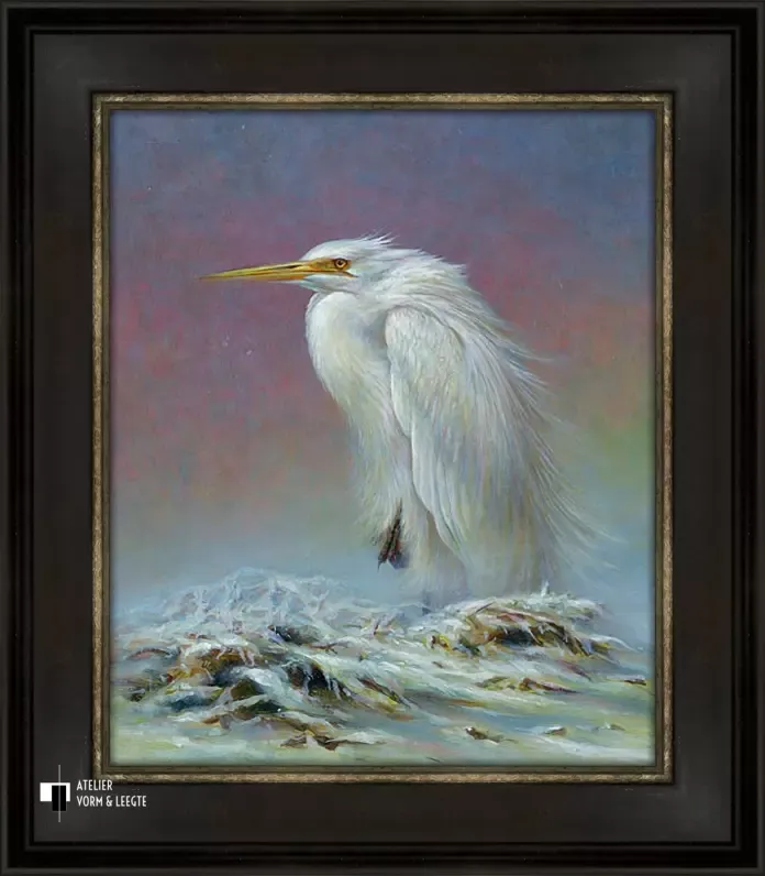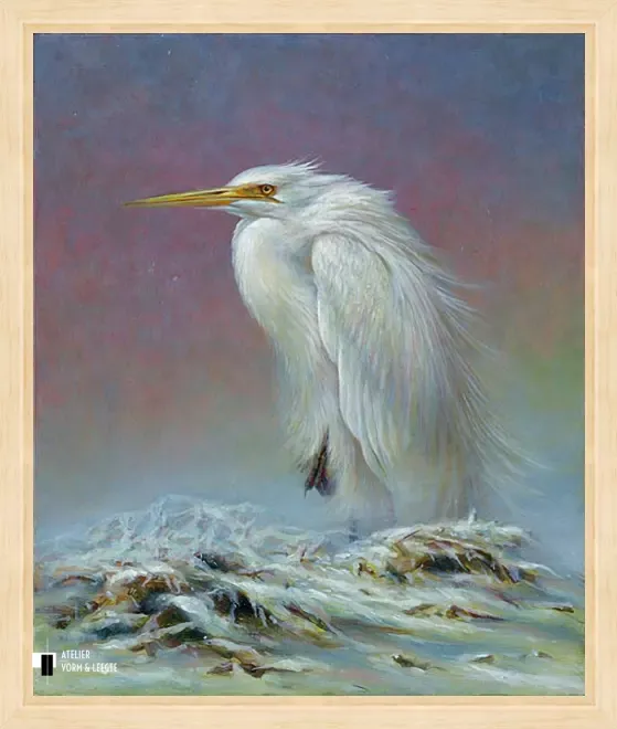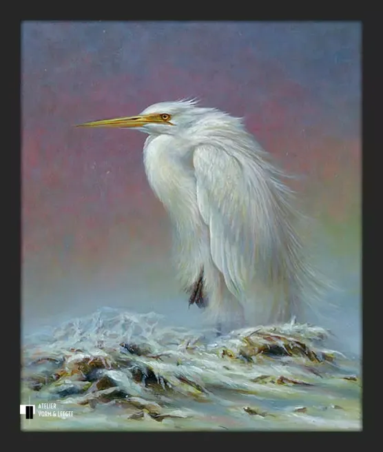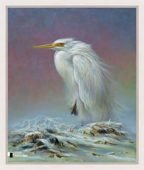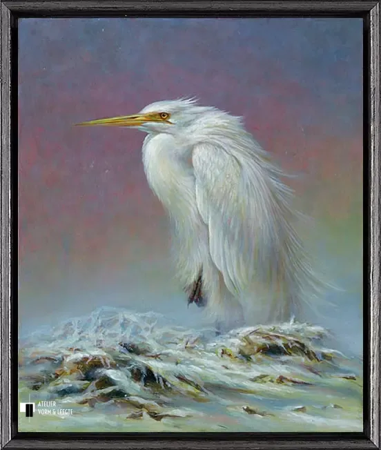 Grote zilverreiger is uitgevoerd als giclée op canvas in een gelimiteerde oplage.