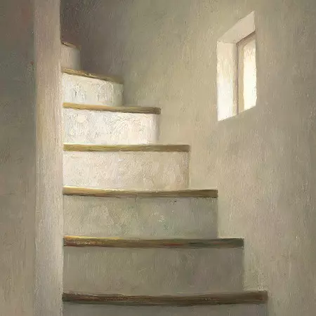 "Het licht van het venster bovenin lijkt ons uit te nodigen…. Zullen we de kasteeltrap gaan betreden?"