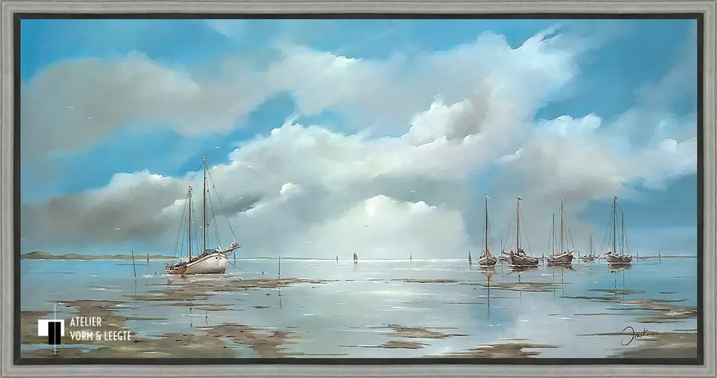 Bruine vloot op het blauwe wad is uitgevoerd als giclée in gelimiteerde oplage.