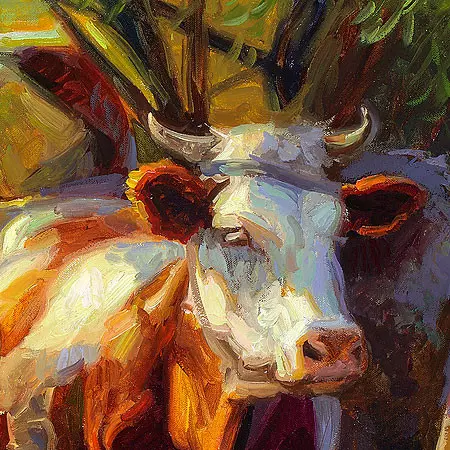 Roodbont vee onder wilg is uitgevoerd als giclée in gelimiteerde oplage.