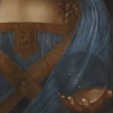 Dit doek is waarschijnlijk geschilderd voor Lodewijk XII in de tijd van de Renaissance. Jezus Christus is hier afgebeeld in een blauw gewaad dat is afgezet met warmbruine biezen met motief. De achtergrond van het portret is zwart wat kenmerkend is voor deze periode en de stijl van Da Vinci. De blik in de ogen van onze Salvator Mundi is mystiek en geheimzinnig. En dat sluit mooi aan bij de geruchten dat da Vinci dit portret niet zelf geschilderd zou hebben. Of dat wel of niet zo is zal wel voor altijd in het land der raadselen blijven.