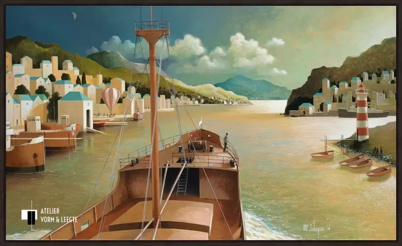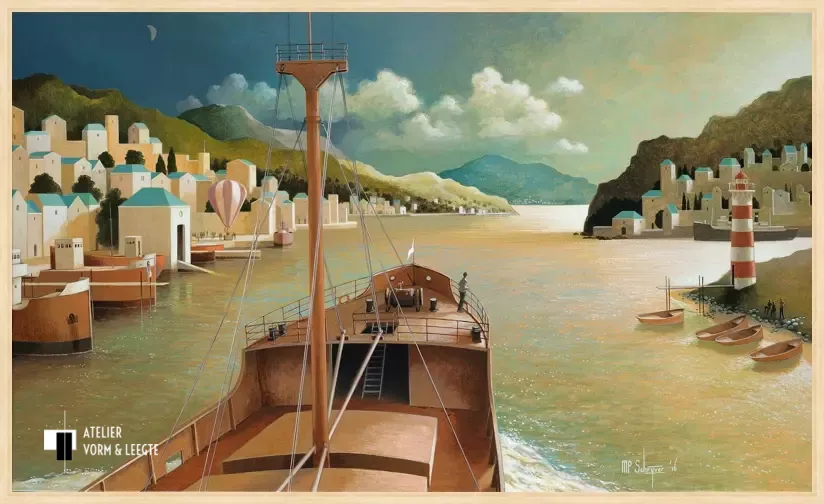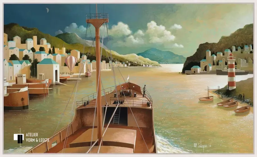 Het zijn kleine droomwerelden, de schilderijen van Michiel Schrijver. Niet bestaande dorpjes en haventjes aan zee die vriendelijk aandoen en die je uitnodigen erin te gaan verdwalen. Elk doek laat je even wegmijmeren in de uitgestrektheid en de geur van zilte zee…