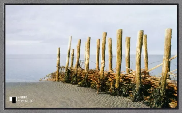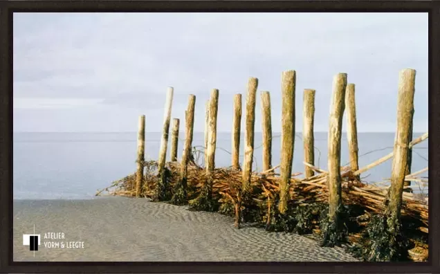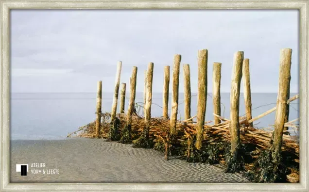 De golfbrekers op het strand zijn hier prachtig op doek gezet door kunstenaar Peter van der Ploeg. De zee, het hout, het strand... je ruikt de zilte zeelucht al!