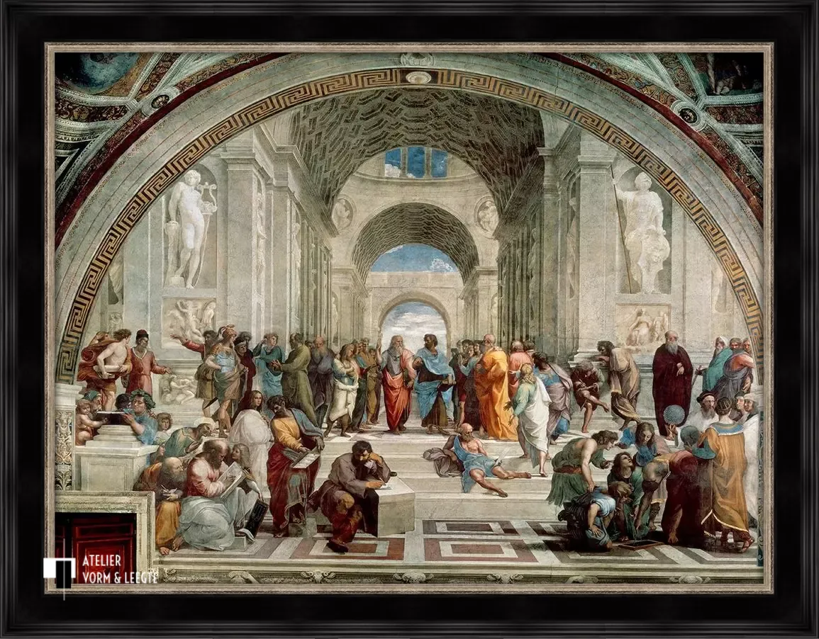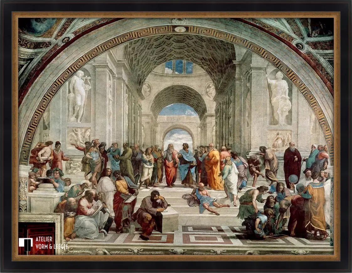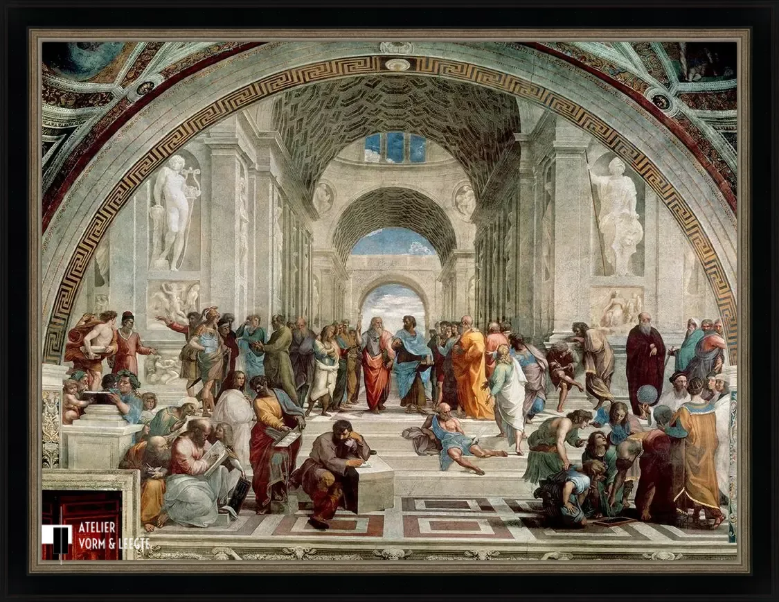 De school van Athene is een fresco van Raphaël, uitgevoerd als giclée op canvas.