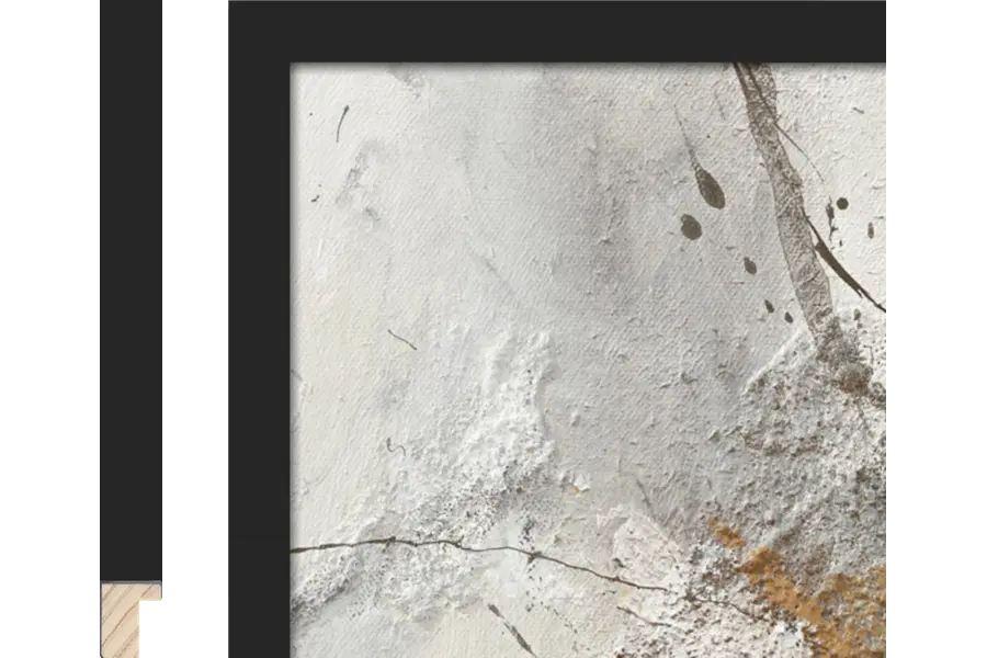 Deze lijst heeft een middelhoge sponning, waardoor deze ideaal is voor alle kunst die op een papieren drager, paneel of board bevestigd is.