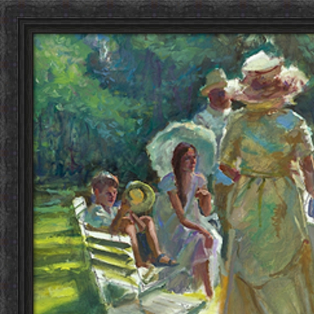 We maken het kunstwerk alvast inlijstklaar en zetten het op de ezel. We tonen de hoekmonsters van de lijsten dan in combinatie met het kunstwerk per videobelafspraak zodat je het real live kunt beoordelen. We kunnen dan ook overleggen als er nog andere wensen zijn.
