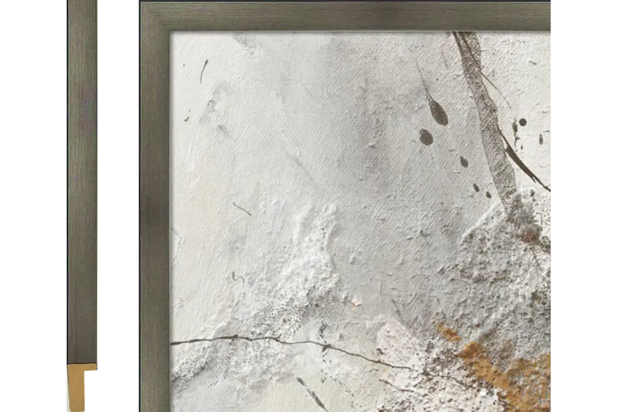Deze houten lijst komt uit de Satin collectie en onderscheidt zich door zijn subtiele glans en een heel fijne structuur die als zijde zo zacht lijkt. De zijkant van de lijst is zwart afgewerkt en de voorzijde is voorzien van een loodgrijze toplaag. Het is een lijst die sfeer geeft en heel goed gecombineerd kan worden met zowel klassieke als moderne kunst.