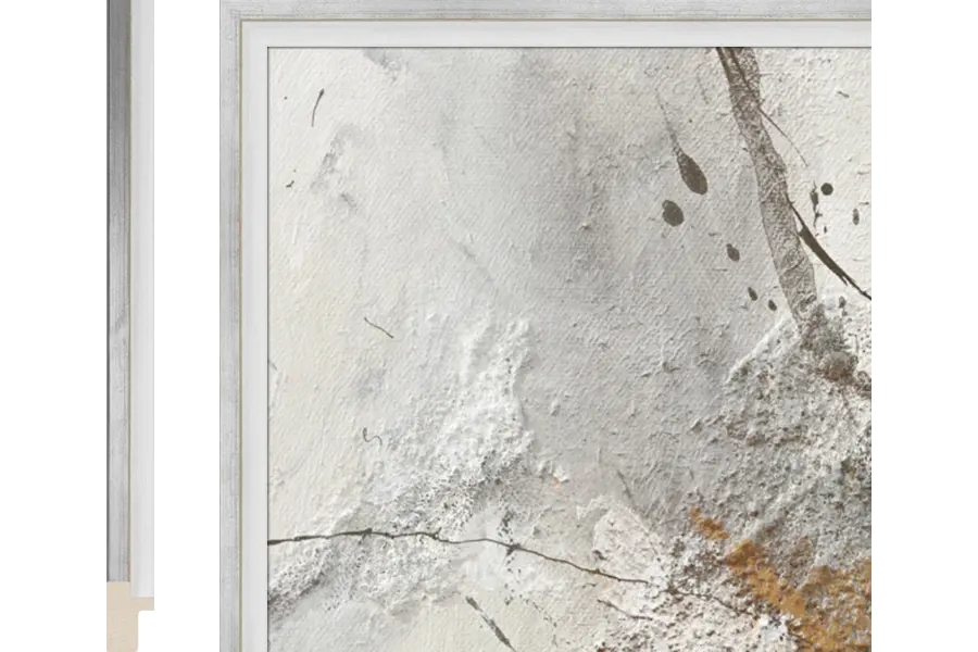 Nina is een elegant lijstje die speciaal ontwikkeld is voor kleine kunstwerkjes. Ondanks het geringe formaat heeft Nina toch een grootse uitstraling. Deze lijst heeft een witte basis en een zilveren toprand. Doordat de toprand iets hoger ligt dan de lijst zelf geeft het de suggestie van een baklijstje, maar dat is het niet.