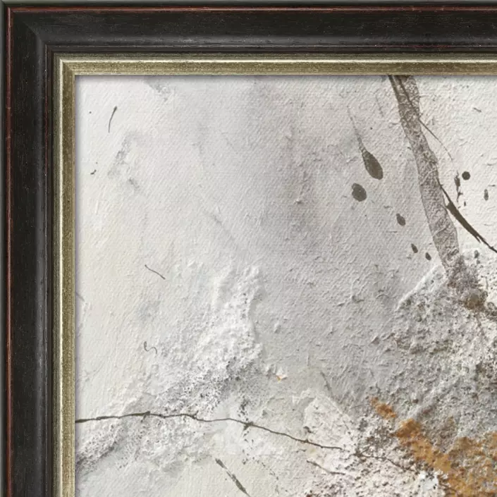 We maken de lijst precies op maat, waarbij het aan de voorzijde enkele millimeters over het artwerk heen komt. Hierdoor krijg je een mooie aansluiting zonder kieren. In totaal wordt het formaat van het kunstwerk met deze lijst ca 7 cm groter.