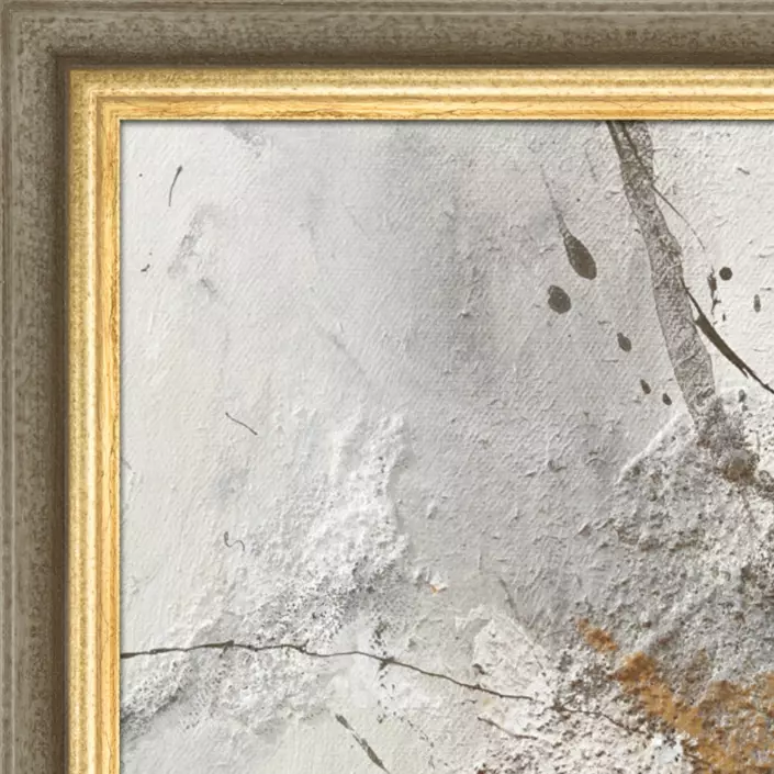 Deze schilderijlijst uit de Villa collectie heeft een mooie antieke uitstraling door zijn licht verweerde karakter. Het is een grijskleurige houten lijst die sierlijk is vormgegeven met aan de beeldzijde een verhoogde bolle sierrand die met goud is afgewerkt.