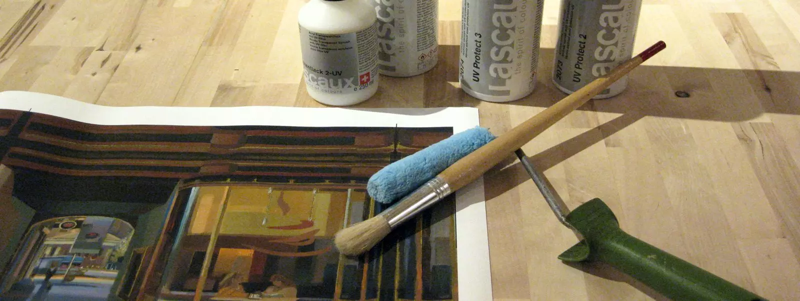 Deze ouderwetse vernis-techniek is heel geschikt als je bijvoorbeeld een giclée-reproductie van een oude meester hebt of iets hebt dat je graag antiek wilt laten lijken. Op deze manier kun je een modern gedrukt werk toch de suggestie van het origineel meegeven.